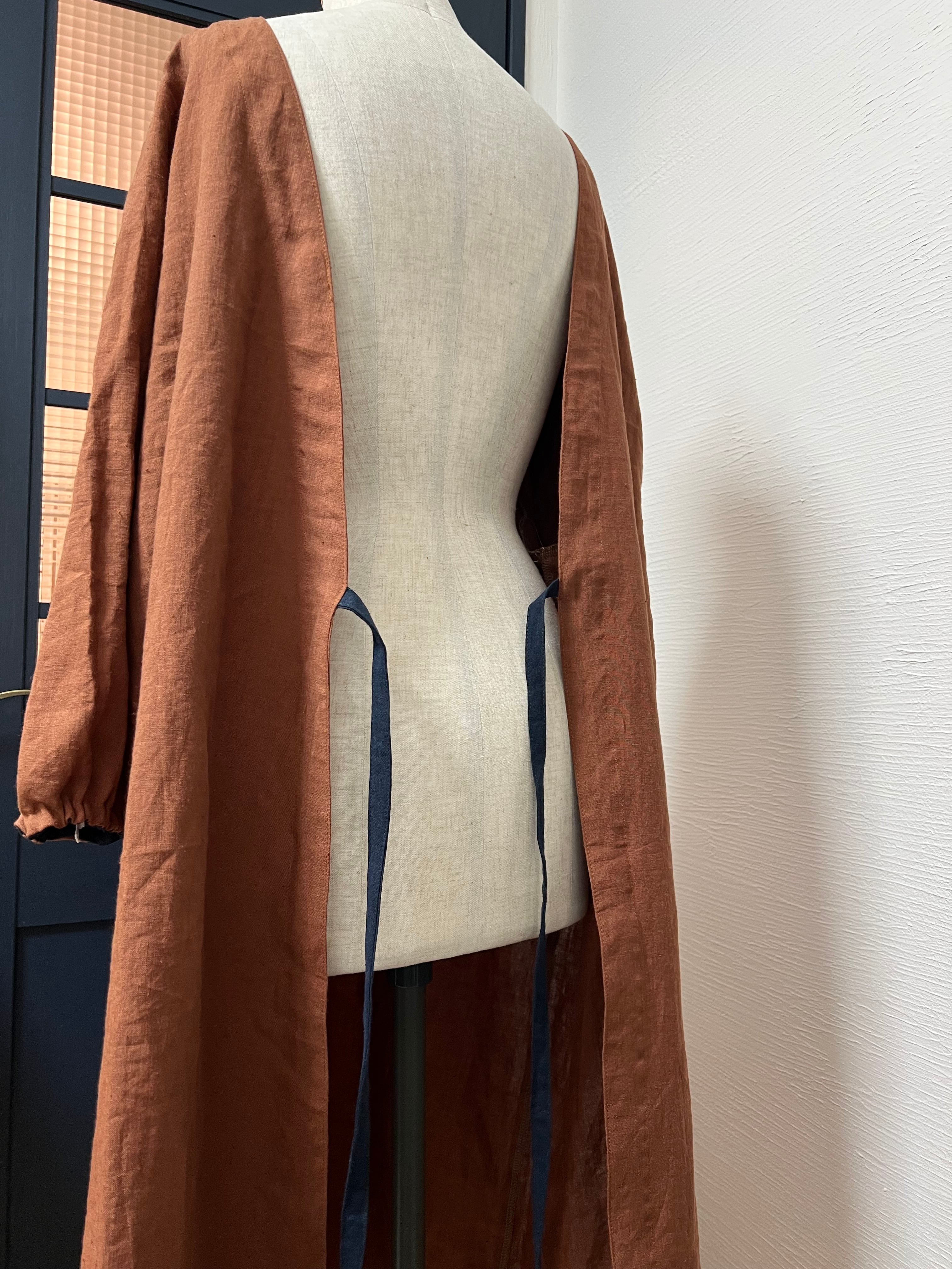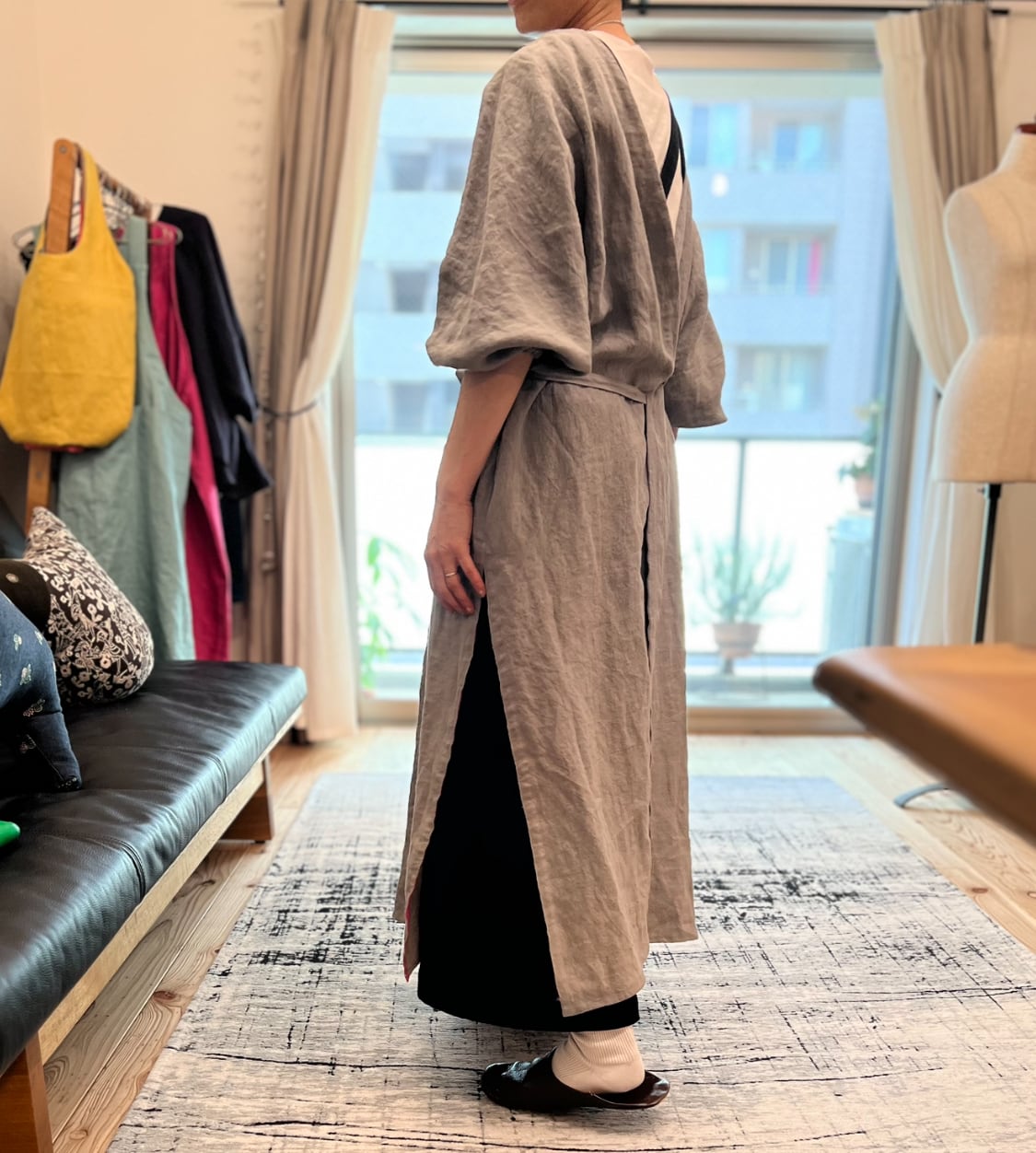 シンプルながら美しさをまとった、日常のためのリネン割烹着です