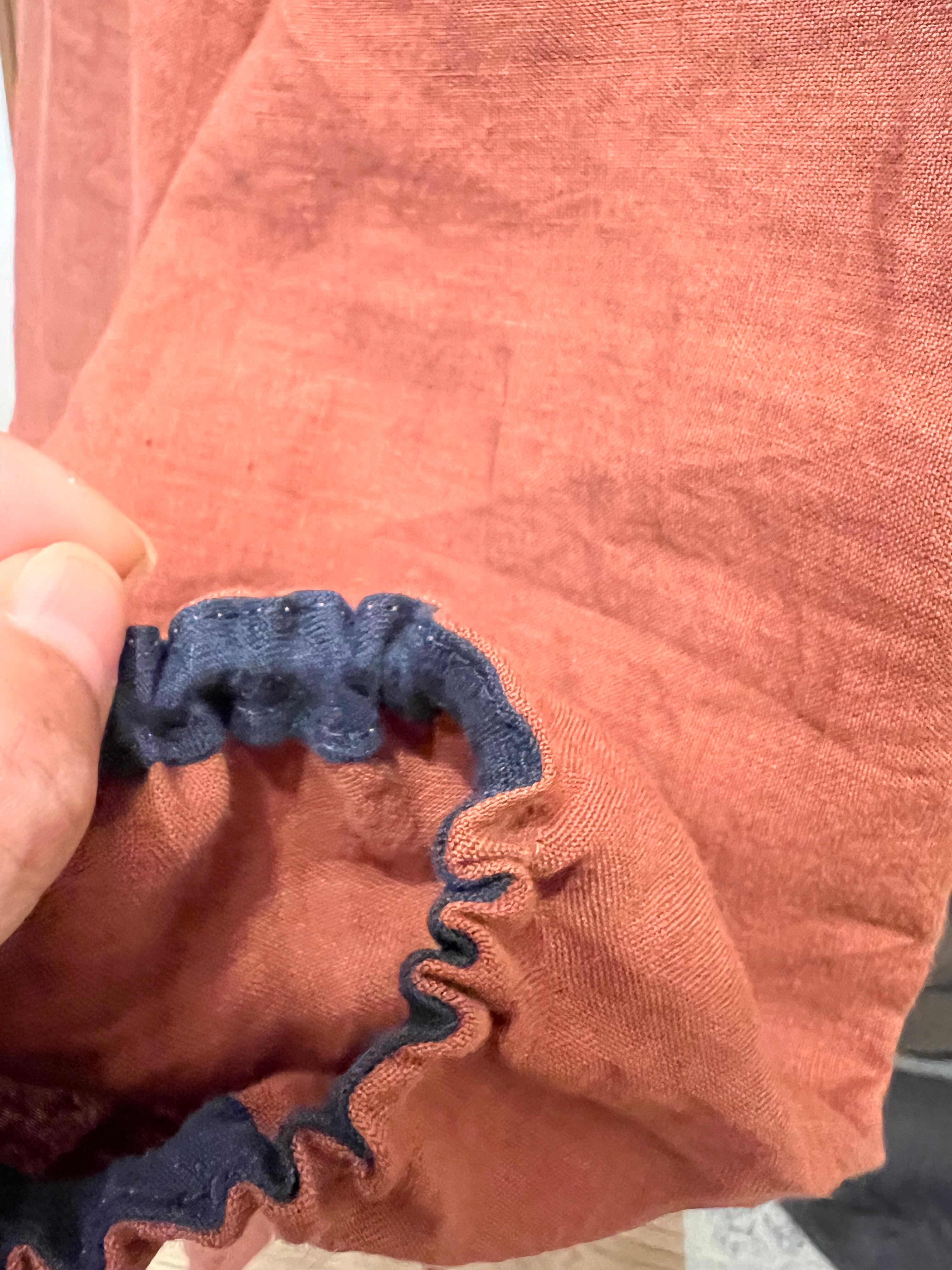 袖部分のゴムは調節可能、ゴムの入れ替えも可能です